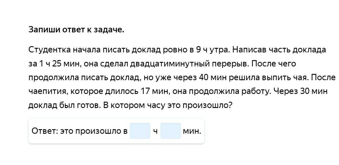 85 + 12 + 40 + 17 + 30 = 184 мин. или 3 часа 4 минуты