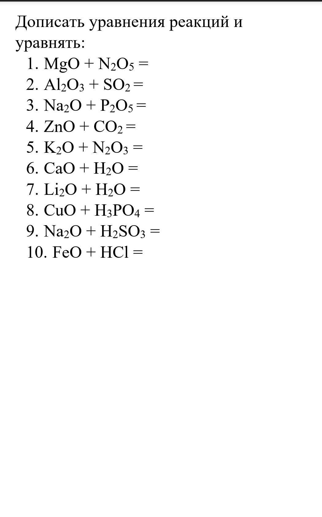 9)Na2O + H2SO3 → H2O + Na2SO3