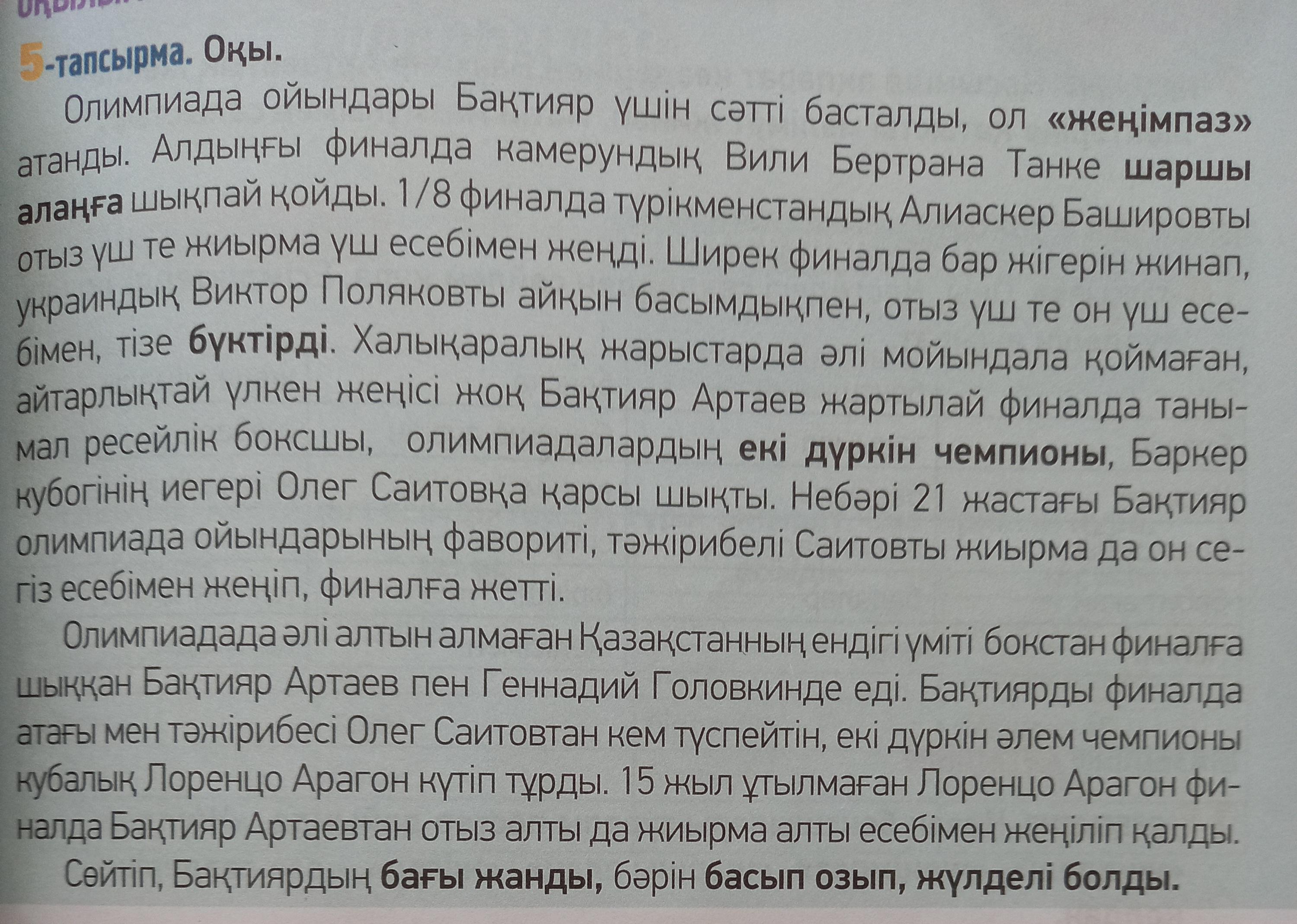 Олимпийские игры начались для Бахтияра успешно, и он стал «победителем». В предыдущем финале не играл камерунец Вилли Бертрана Танке. В 1/8 финала он победил Алиаскера Баширова из Туркменистана со счетом 33 и 23. В четвертьфинале он собрал все силы и с явным преимуществом победил украинца Виктора Полякова, тридцать три и тринадцать раз. В полуфинале Бактыяр Артаев, еще не получивший признания на международных соревнованиях и не имевший значимых побед, встретился с известным российским боксером, двукратным олимпийским чемпионом, обладателем Кубка Баркера Олегом Саитовым. В финал вышел лишь 21-летний Бахтияр, победивший фаворита Олимпийских игр опытного Саитова со счетом двадцать-тринадцать. Казахстан, еще не завоевавший золото на Олимпиаде, теперь возлагает надежды на финалистов бокса Бактыяра Артаева и Геннадия Головкина. В финале Бахтияра ждал не менее известный и опытный, чем Олег Саитов, двукратный чемпион мира Лоренцо Арагон с Кубы. Лоренцо Арагон, не проигрывавший 15 лет, уступил в финале Бактыяру Артаеву со счетом тридцать шесть и двадцать шесть. Таким образом, сад Бахтияра ожил, обогнал всех и победил.