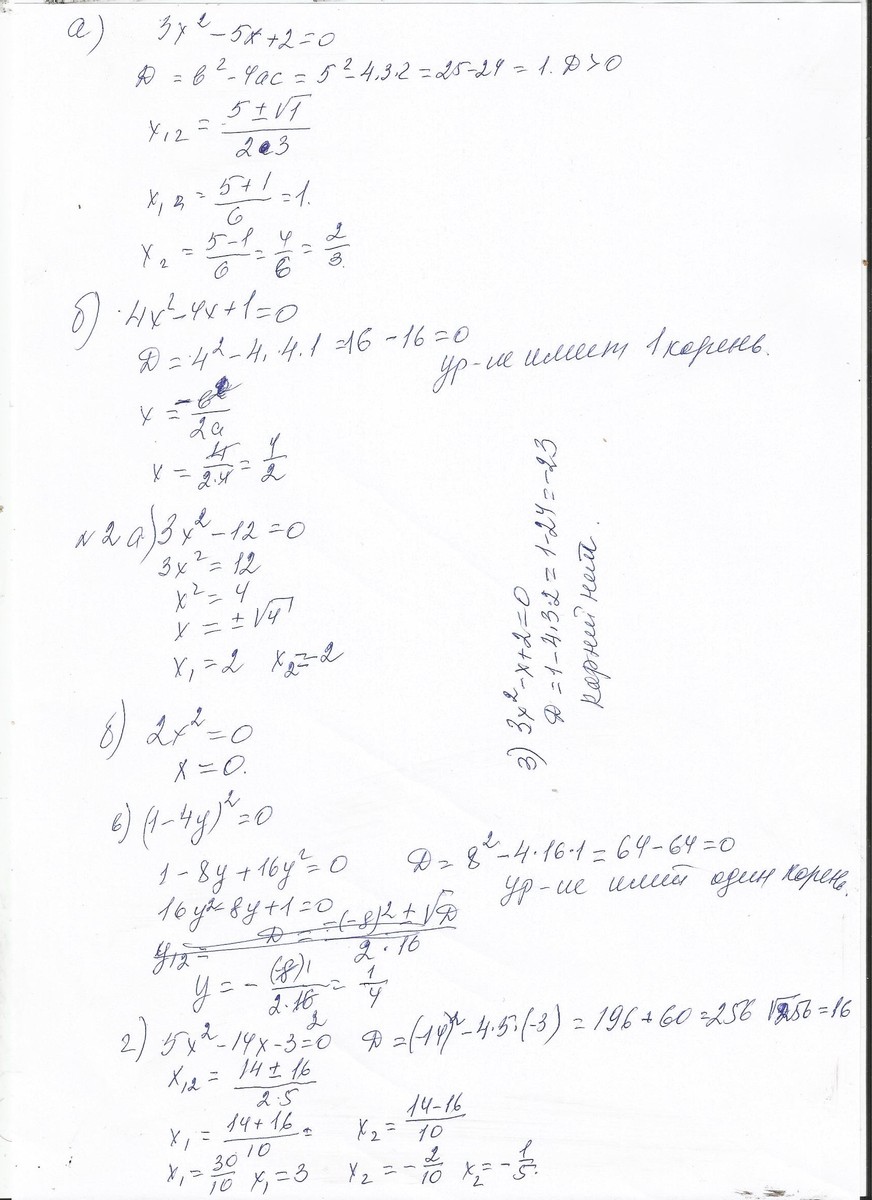 Г)5х(в квадрате)-14х-3=0