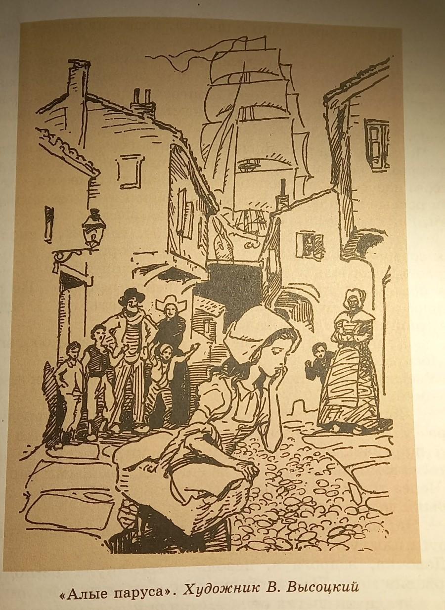 Картина В. Высоцкого "Алые паруса" зацепила меня своим влекомым необычием. Увидев эту картину впервые можно подумать о её простоте и легкости: ничем не примечательный корабль плывёт по густо-синему морю, подле стоят скалы. Но есть в этой картине что-то необычное, странноватое и чудесное. И это алые паруса. Они притягивают взгляд. Картина вдохновляет - на что-то новое и необычное. Туман позади корабля как-будто говорит: "взгляни на меня и сделай что-то вдохновляющее! " А море поёт песню про чудесные алые паруса, которые несёт на своих волнах к берегу.