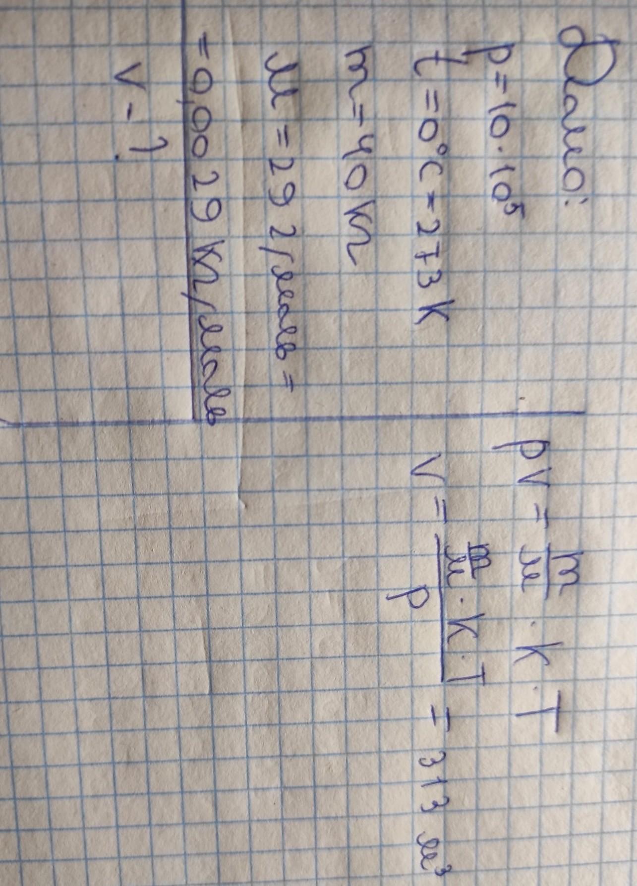 який объем займае повитря при нормальных условиях тиск 10^5 Па, температура 0 градусов, якщо його маса 40 кг и молярна маса повитря 29 г/моль
