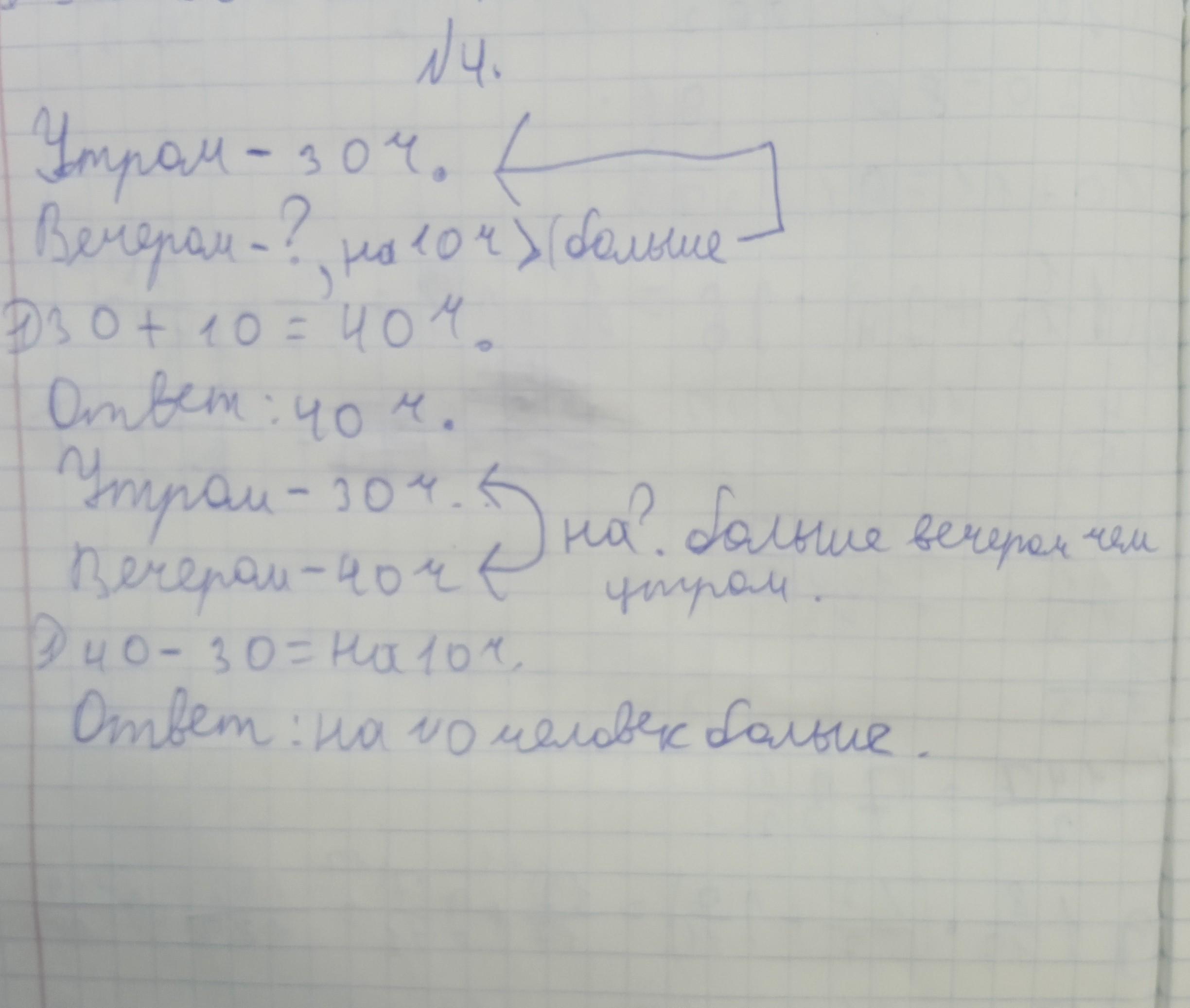 4. Утром выставку посетили 30 человек. А вече- на 10 человек больше. Сколько человек посетило выставку вечером? Составь и реши обратную задачу. ром