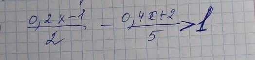 (0,2x-1/2)*5-(0,4x+2/5)*2>1*10
