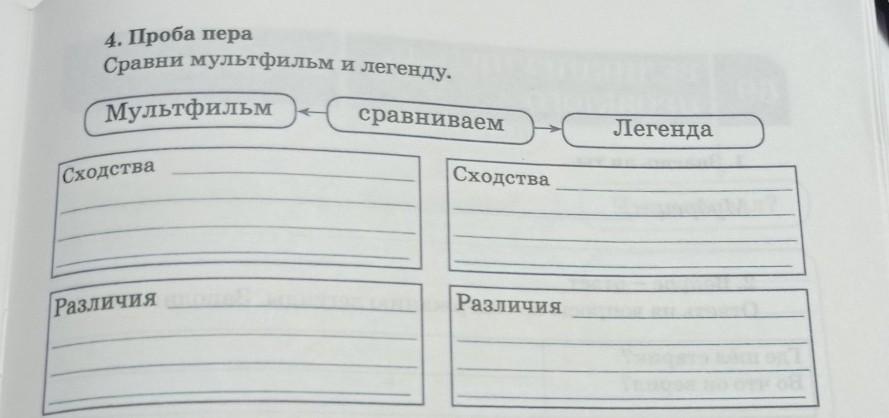4. Проба пера Сравни мультфильм и легенду. Мультфильм сравниваем Легенда Сходства Сходства Различия Различия. УМОЛЯЮ СРОЧНО!!!!!ДАЮ 30 БАЛЛОВ