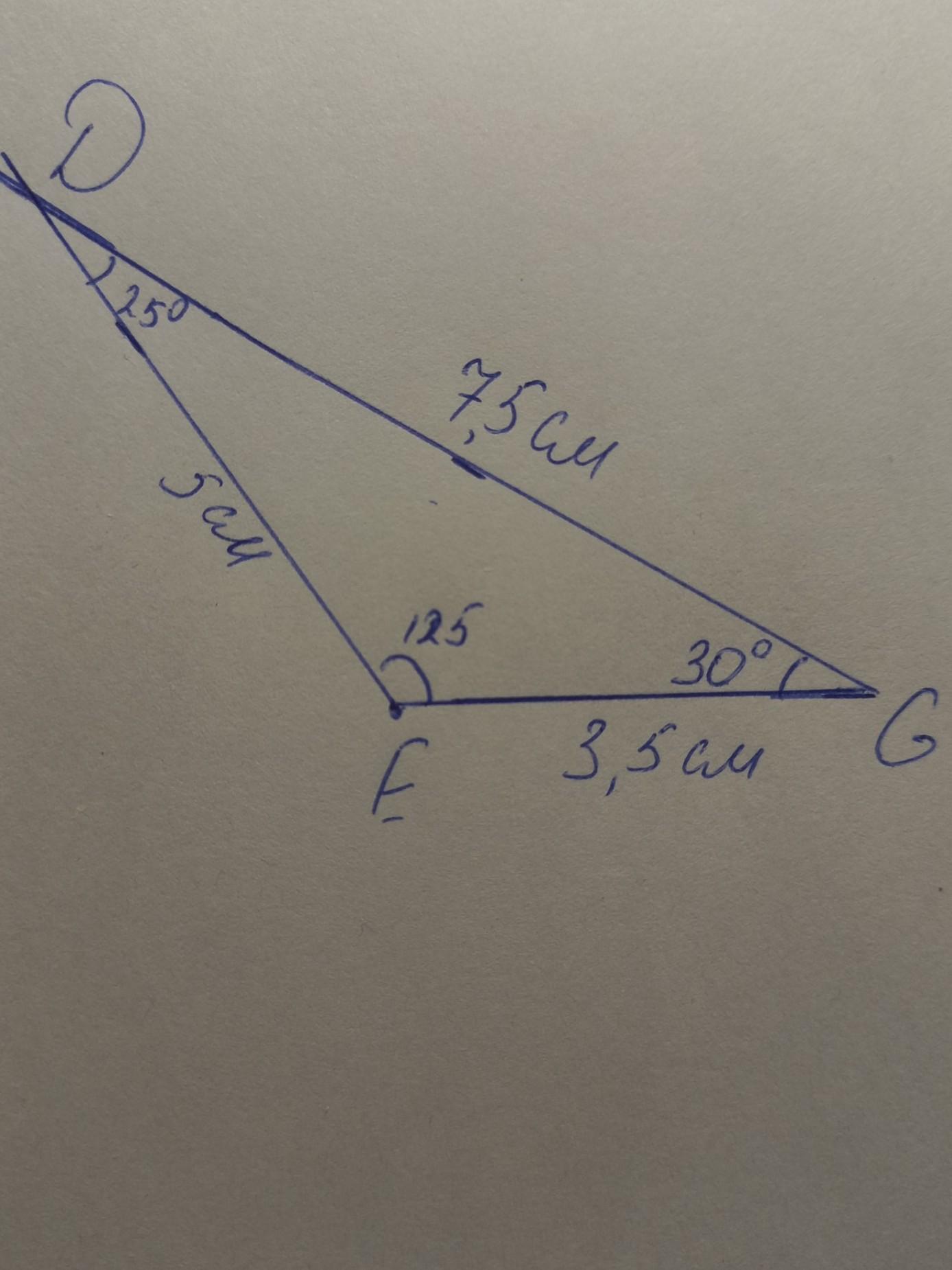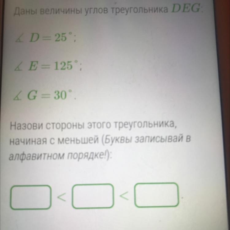 даны величины углов треугольника DEG уголD=25градусов уголE=125грудусов уголG=30градусов