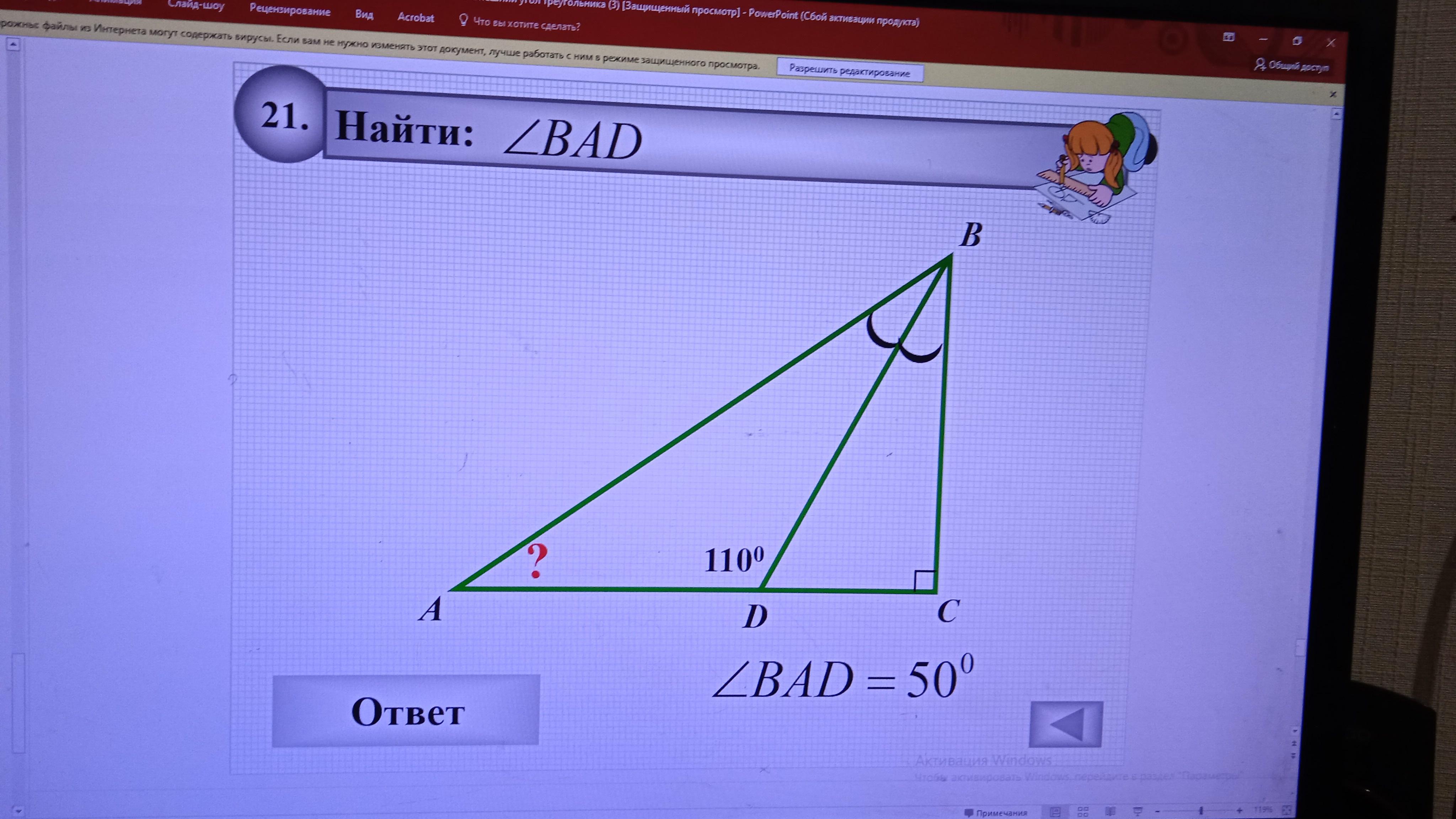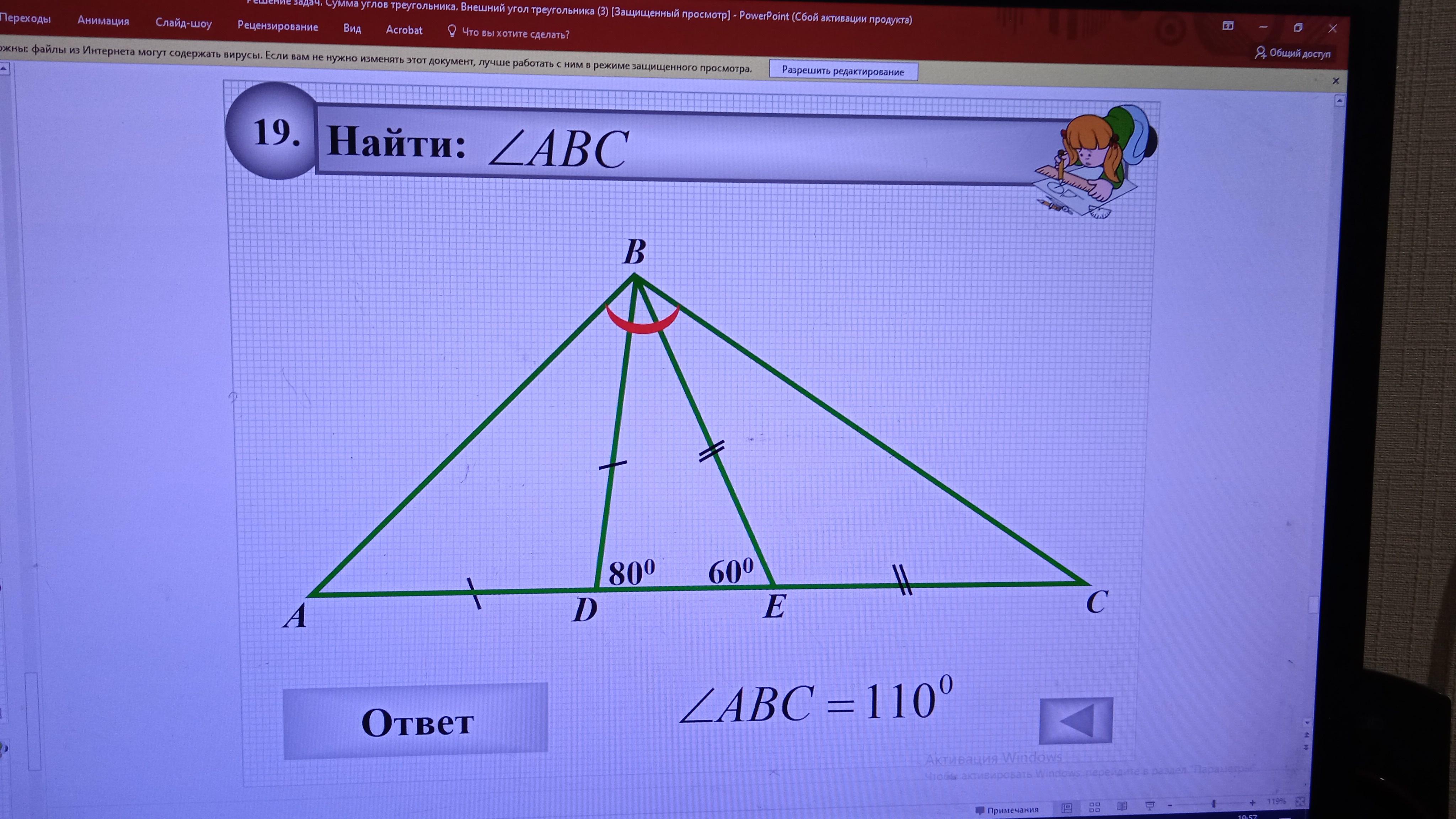 угол ADB=180-80=100, треугольник ABD тоже равнобедренный, поэтому угол ABD=40