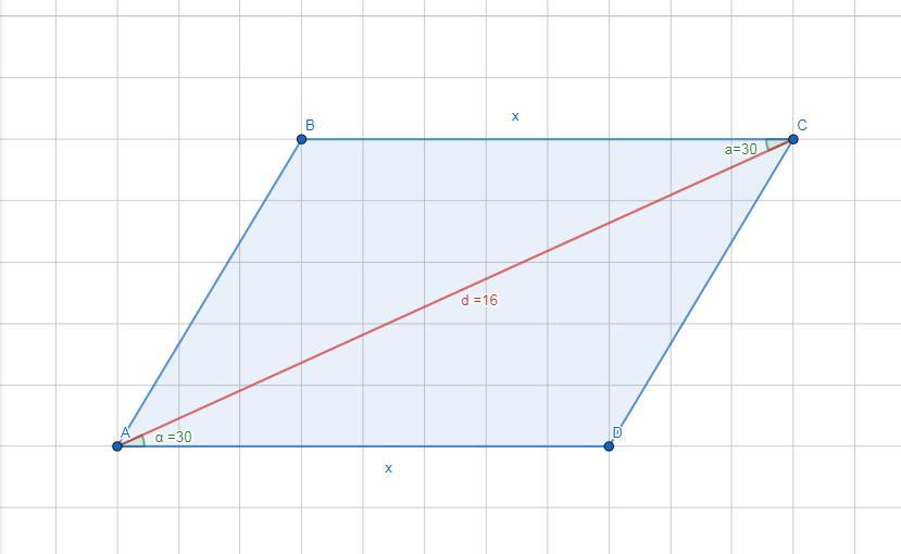 Пусть сторона параллелограмма которая образует угол в 30° с большей диагональю равна x