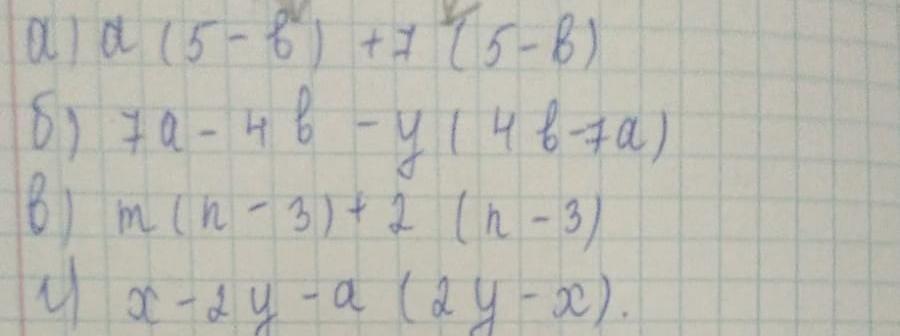 а) a(5-b)+7(5-b)=5a-5b+35+7b=5a+2b+35