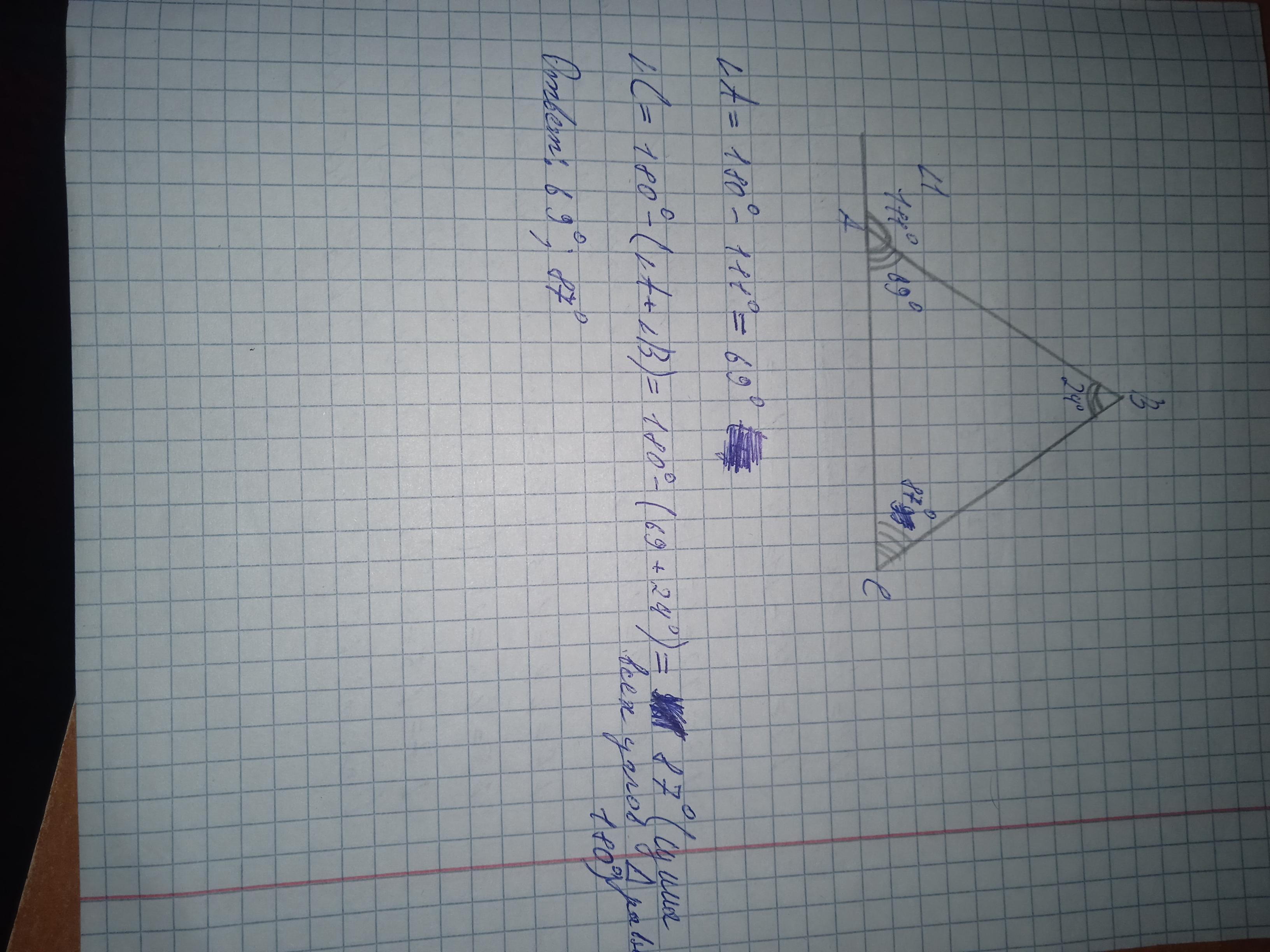 2. Внешний угол треугольника равен 111°, а внутренний угол, не смежный с ним, равен 24°. Найти неизвестные углы треугольника.