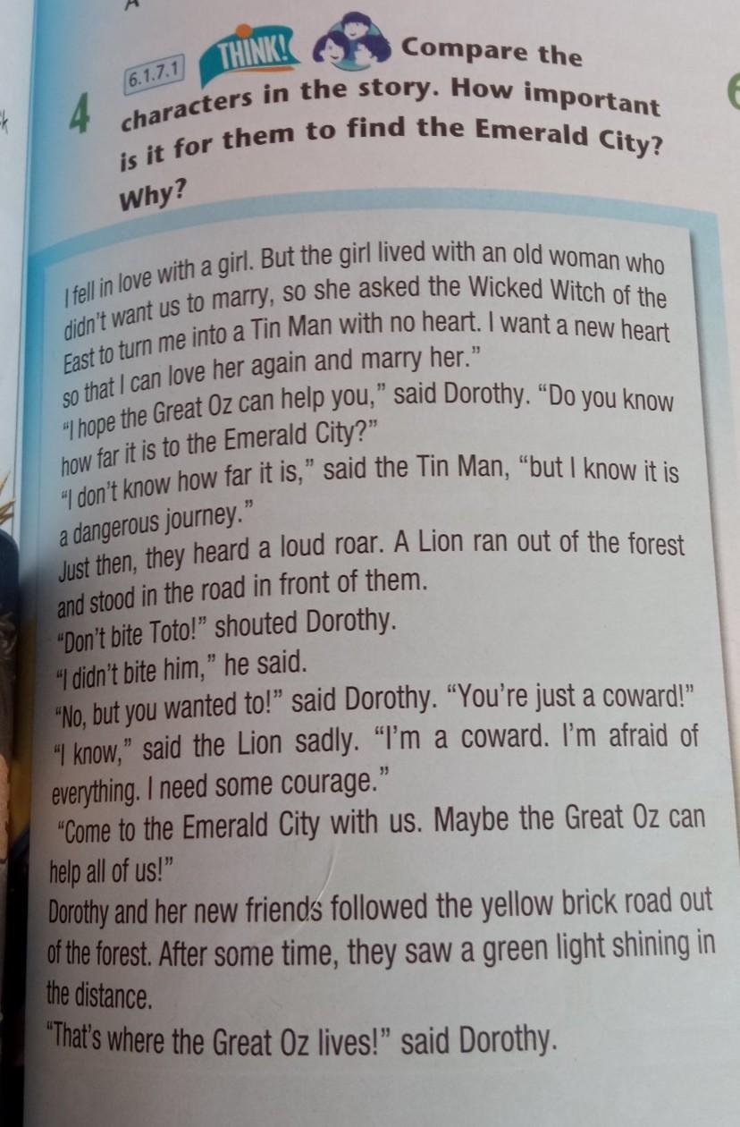 4 Compare the characters in the story. How important is it for them to find the Emerald City? Why?