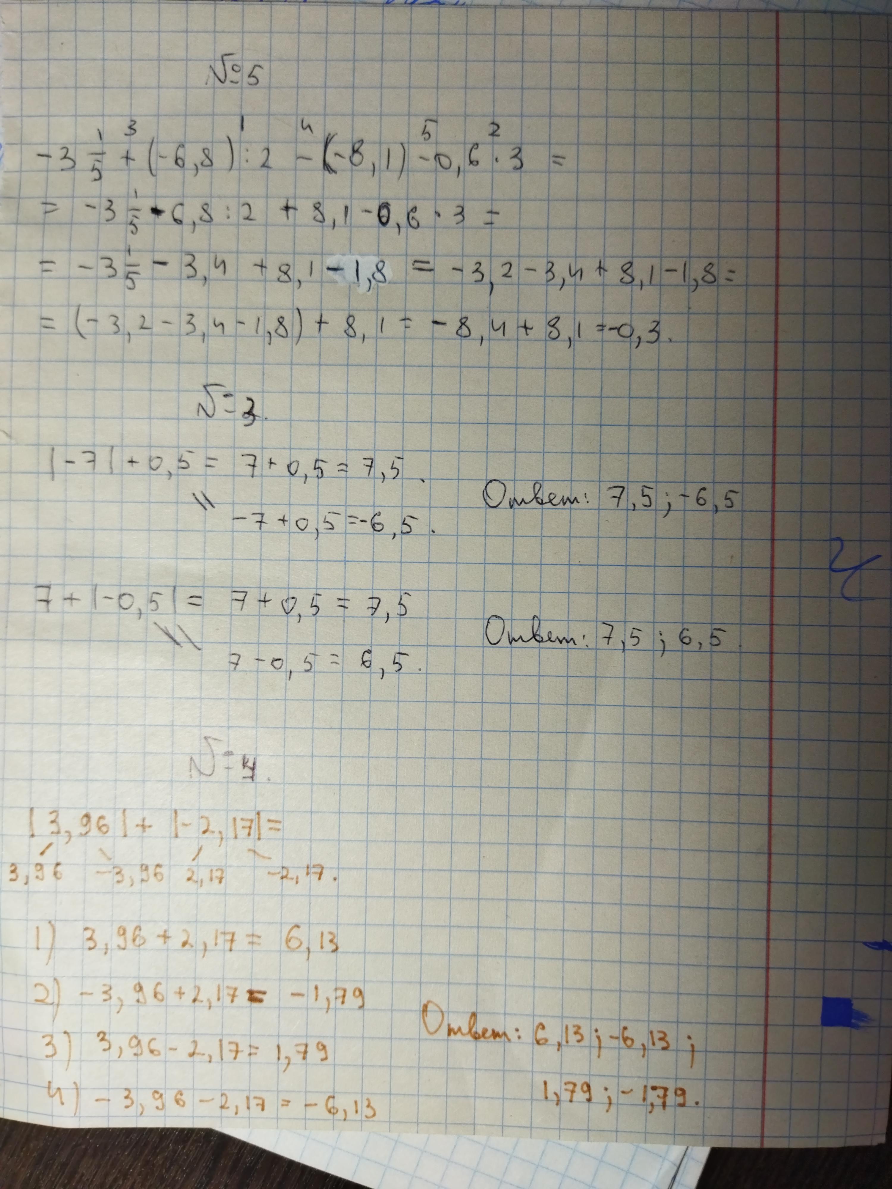 Сравните значения выражений |-7| + 0,5 и 7 + |-0,5|.