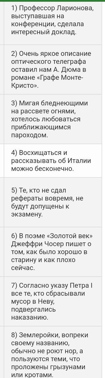 В остальных предложениях нет причастного и деепричастного оборотов.