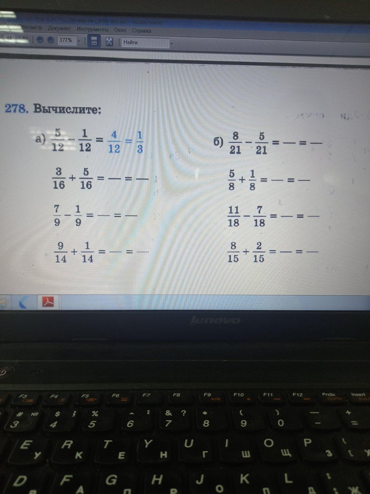 б) 8/21-5/21=3/21=1/7