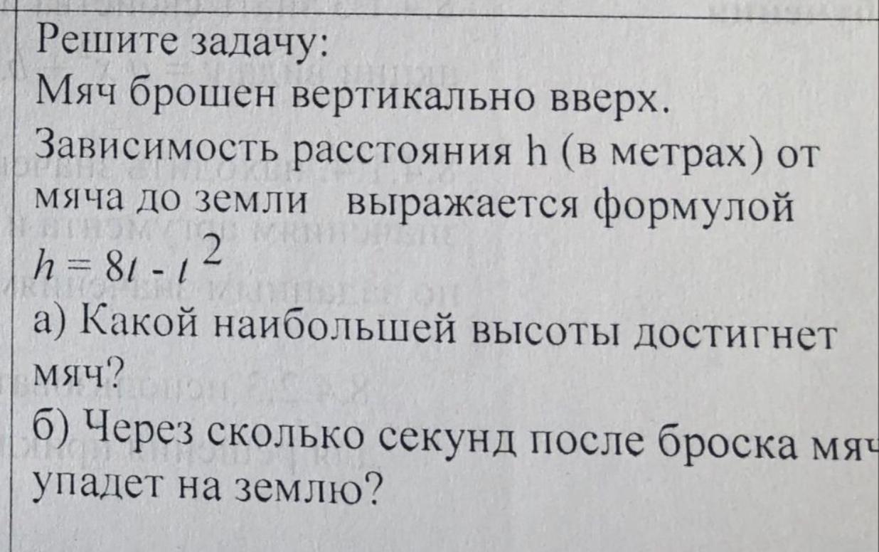 через 8 с мяч упадет на землю