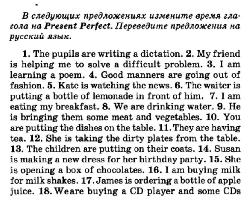 10. You have put the dishes on the table. - Ты поставил тарелки на стол.
