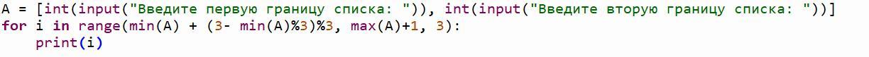 for i in range(min(A) + (3- min(A)%3)%3, max(A)+1, 3):
