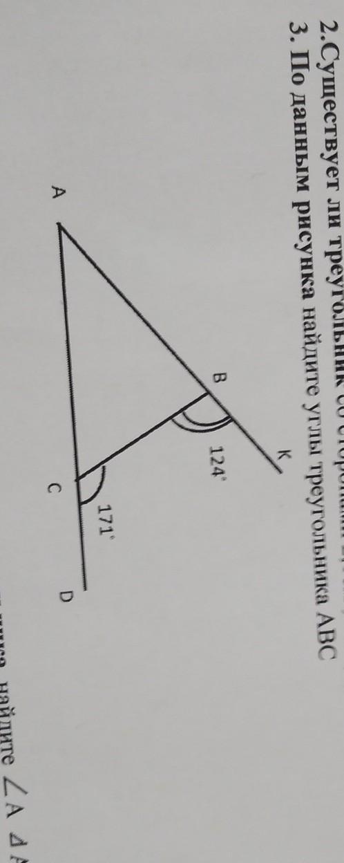 ∠ABC - смежный с ∠КВС, ∠КВС = 124° ⇒ ∠АВС = 180° - 124° = 56°
