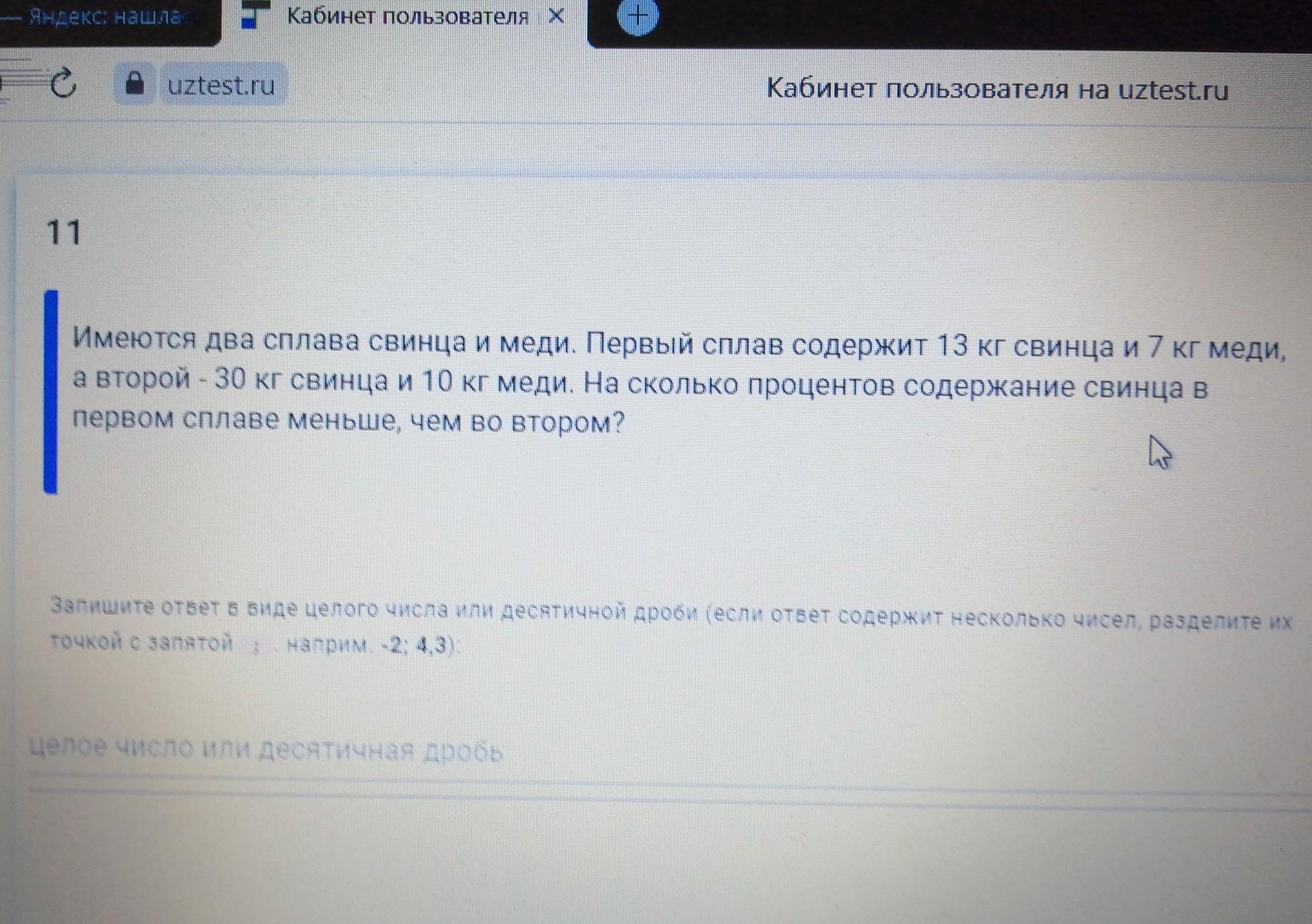 ответ: содержание свинца в первом сплаве на 10% меньше, чем во втором.