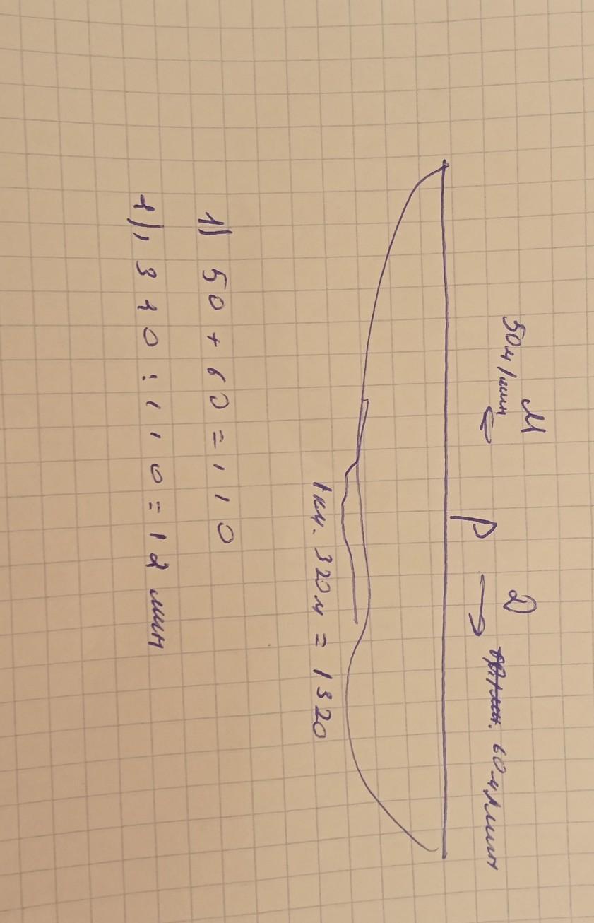 60 м/мин. Через сколько минут расстояние между ними будет 1 км 320 м?