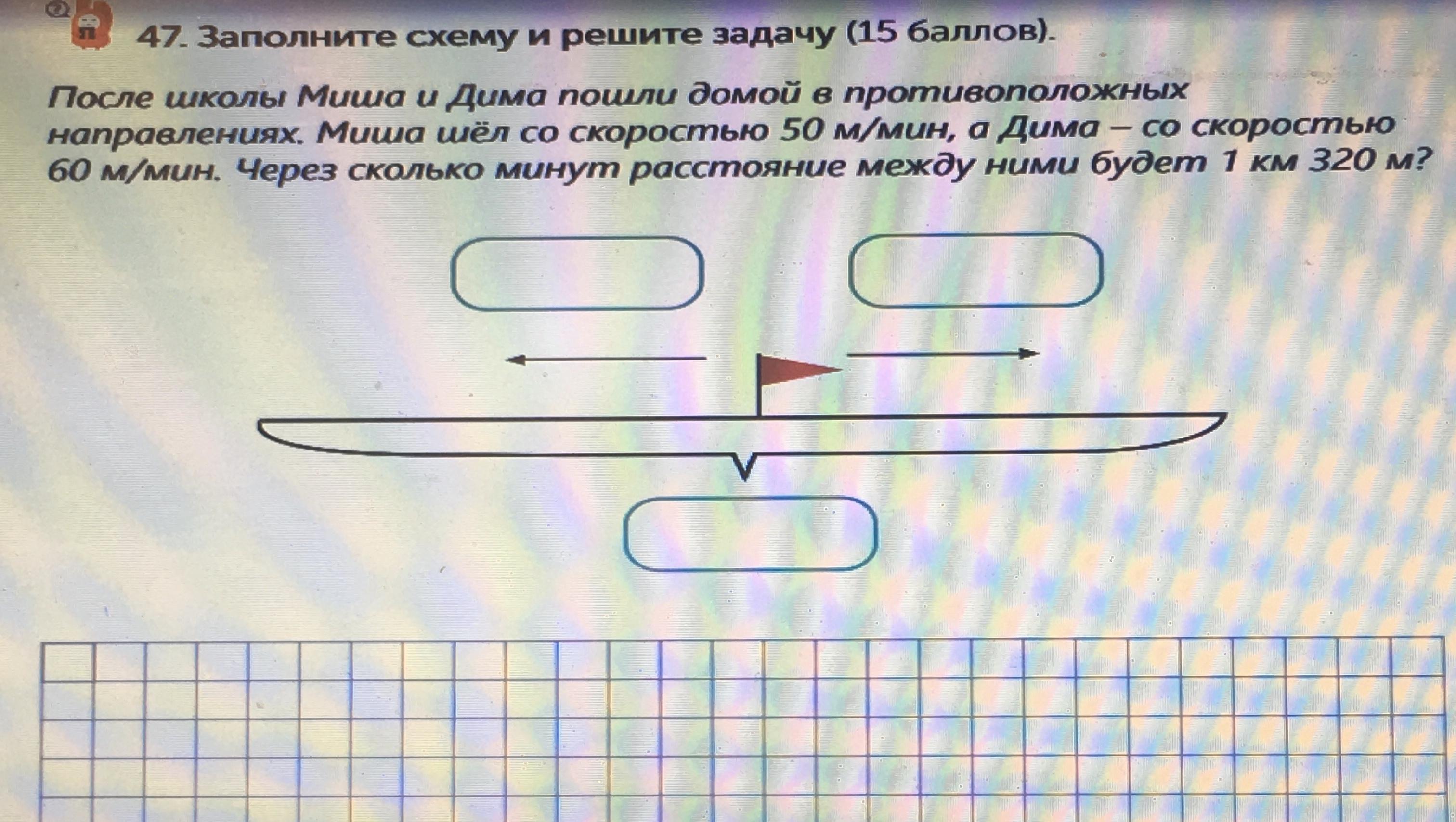 направлениях. Миша шёл со скоростью 50 м/мин, а Дима – со скоростью
