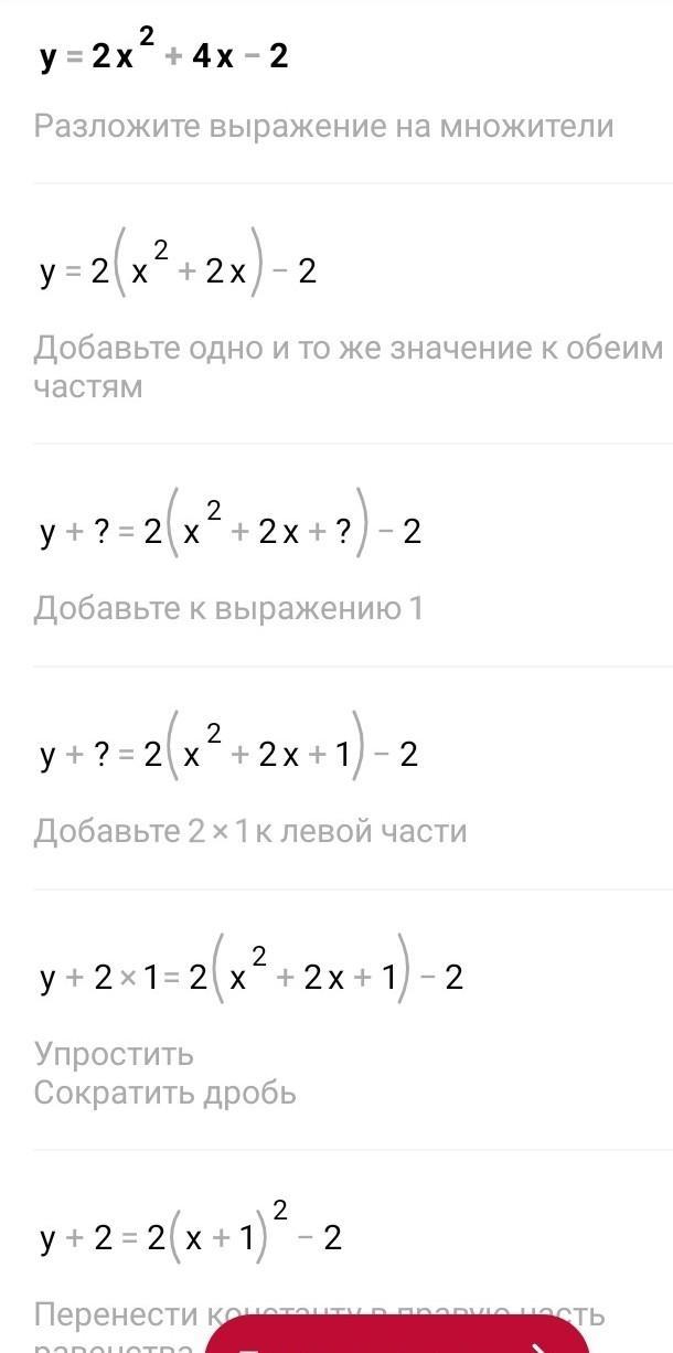 shu rasmda hammasi bor у=2х² + 4х -2.