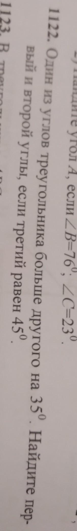 один из углов треугольника больше другого на 35°. Найдите первый и второй углы, если третих равен 45°