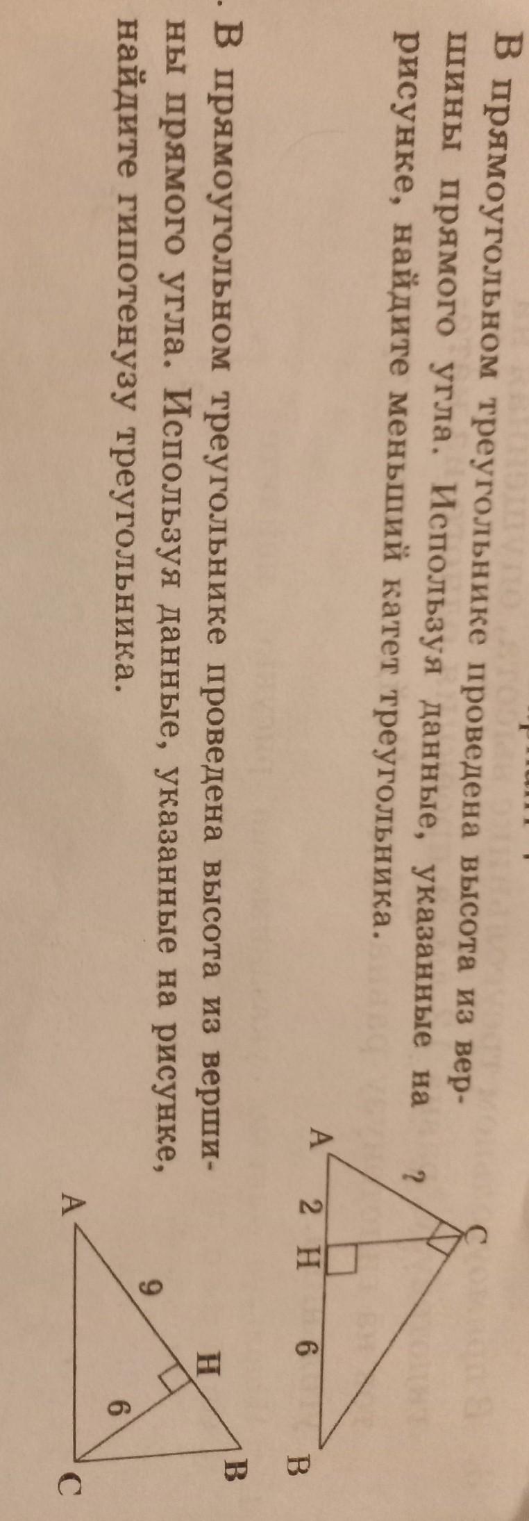 1. В прямоугольном треугольнике проведена высота из вершины прямого угла. Используя данные, указанные на рисунке, найдите меньший катет треугольника. A 2 н 6 B.