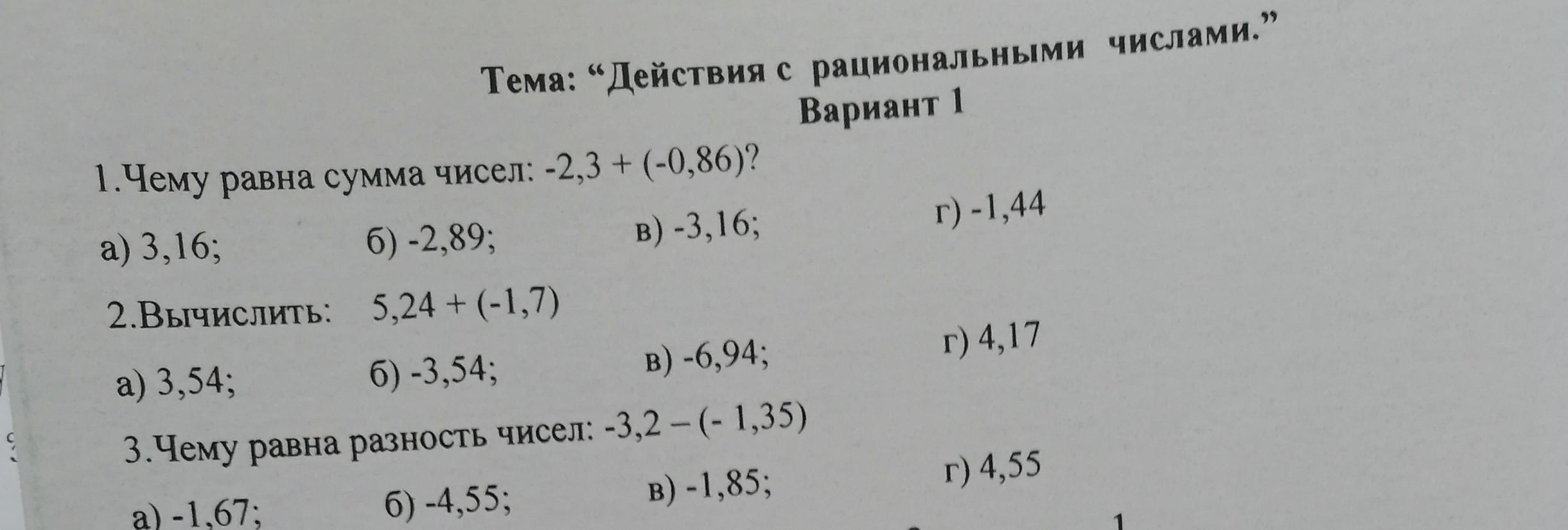1. -3,16 вариант в)