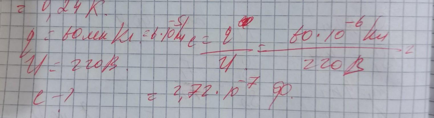 2. Какова емкость конденсатора, если он получил заряд 60 мкКл от источника тока напряжением 220В?
