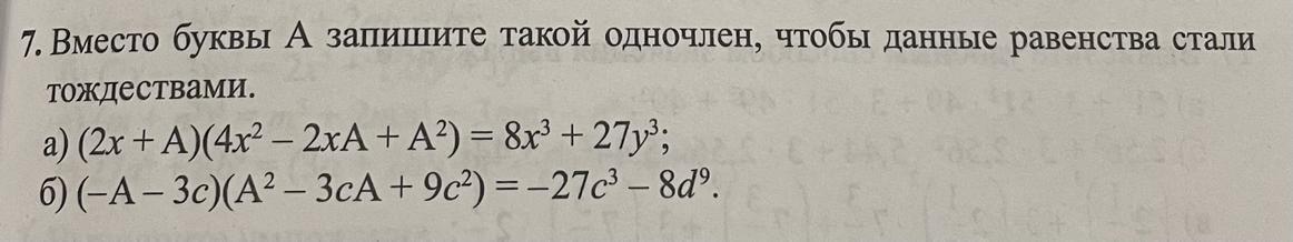 7. Вместо буквы А запишите такой одночлен, чтобы данные равенства стали