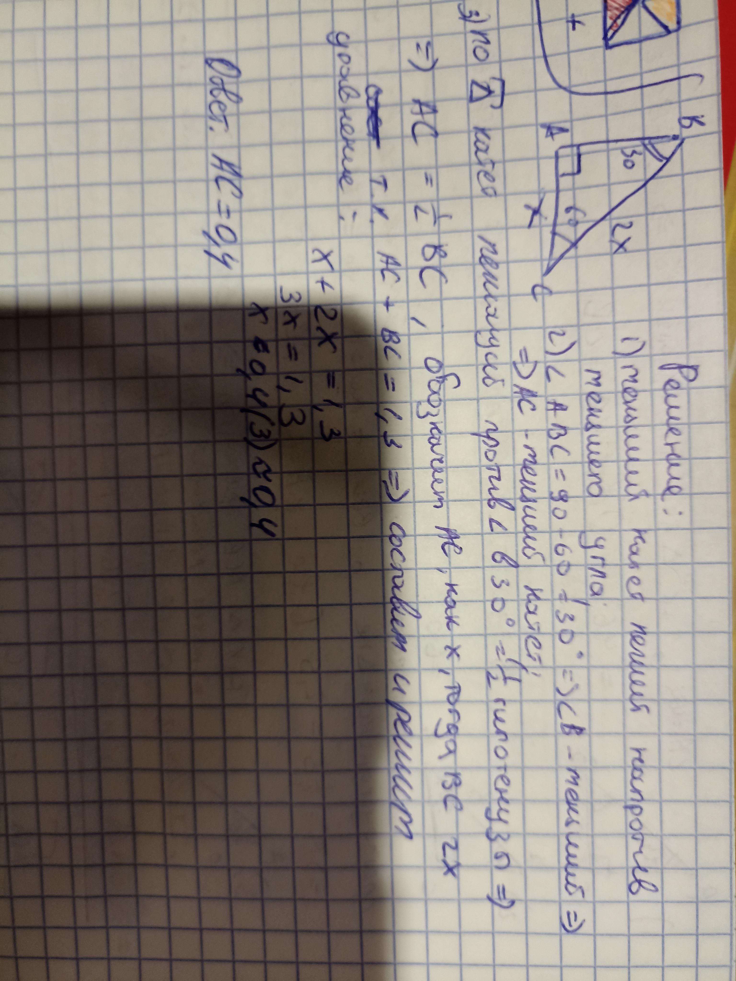 сумма с гипотенузой равна 1,3, а один из углов треугольника равен 60°.