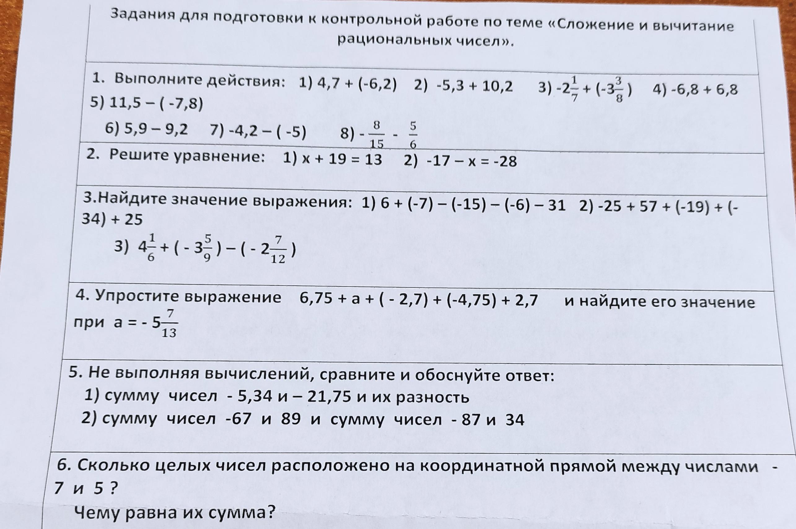 1) -11 2) 4 3) 3 7/36
