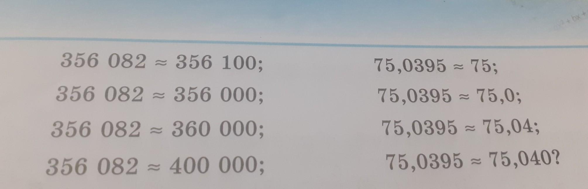 758. Прочитайте приближенные равенства. До какого разряда округление каждое число:2)75,0395=80;