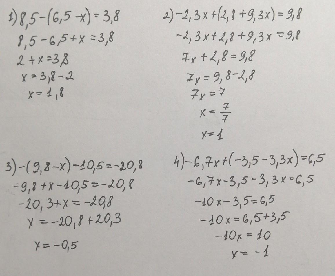 Номер 990.Решмте уравнение: 1)8,5-(6,5-x)=3,8