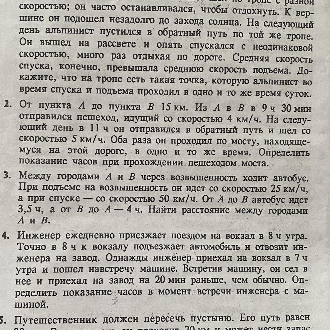 Пусть x км от пункта А до моста , тогда от моста до пункта B (15-х)км . На пути из A в B пешеход дошёл до моста за x/4 часов, из B в A за (15-х)/5 часов. Пешеход проходил мост в 9,5 + х/4