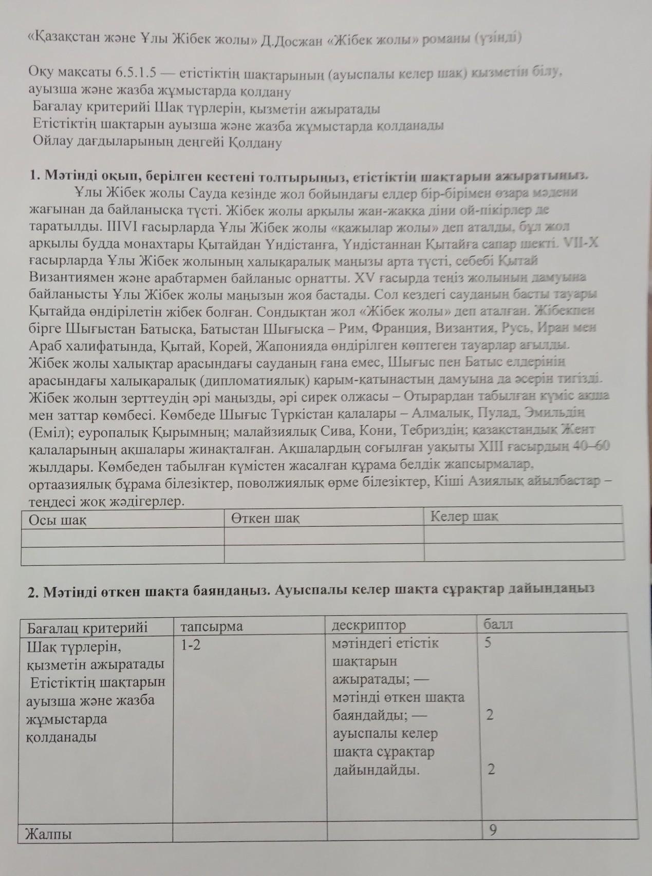 мәтінді өткен шақта баяндаңыз, ауыспалы келер шақта сұрақтар дайындаңыз