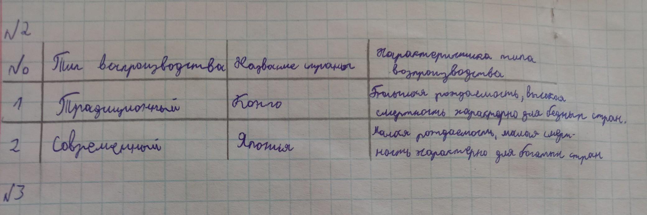воспроизводства населения и названием страны (Япония, Конго). Результаты отразите в