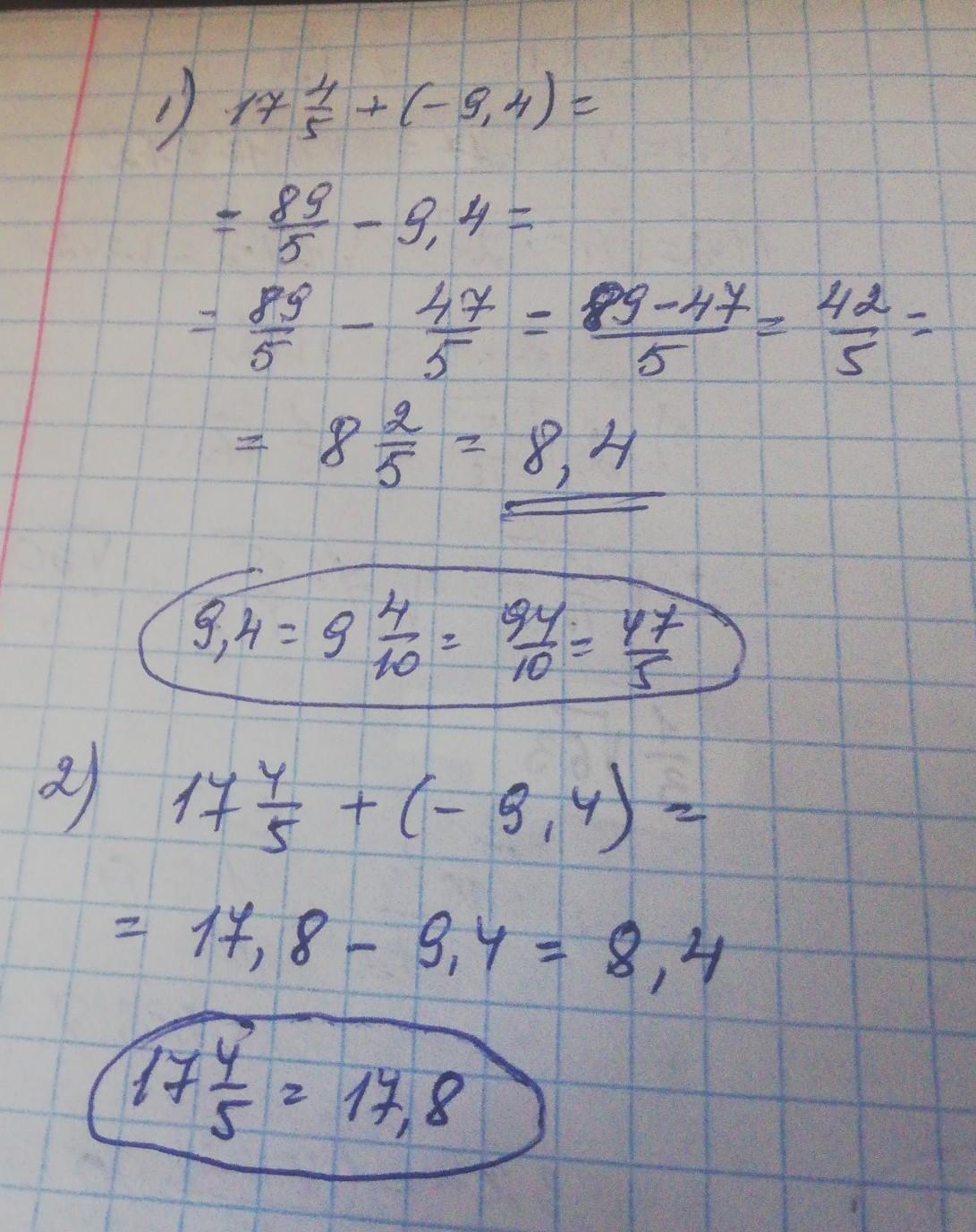 Прибавить отрицательное число значит вычесть противоположное. Получаем 17,8-9,4.