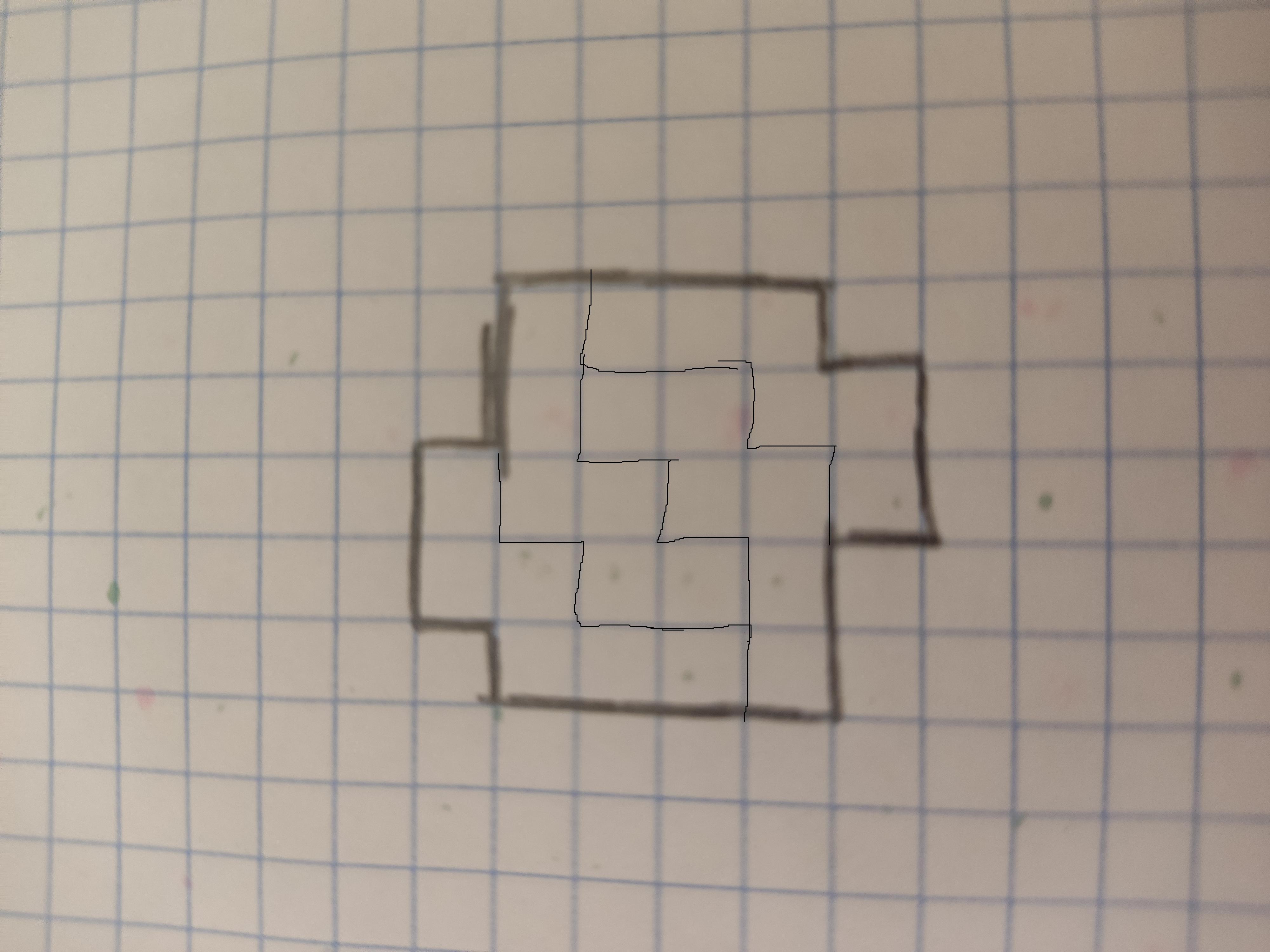 Помогите!!! Надо поделить эту фигуру на 4 одинаковые части. Фигуру можно поворачивать.