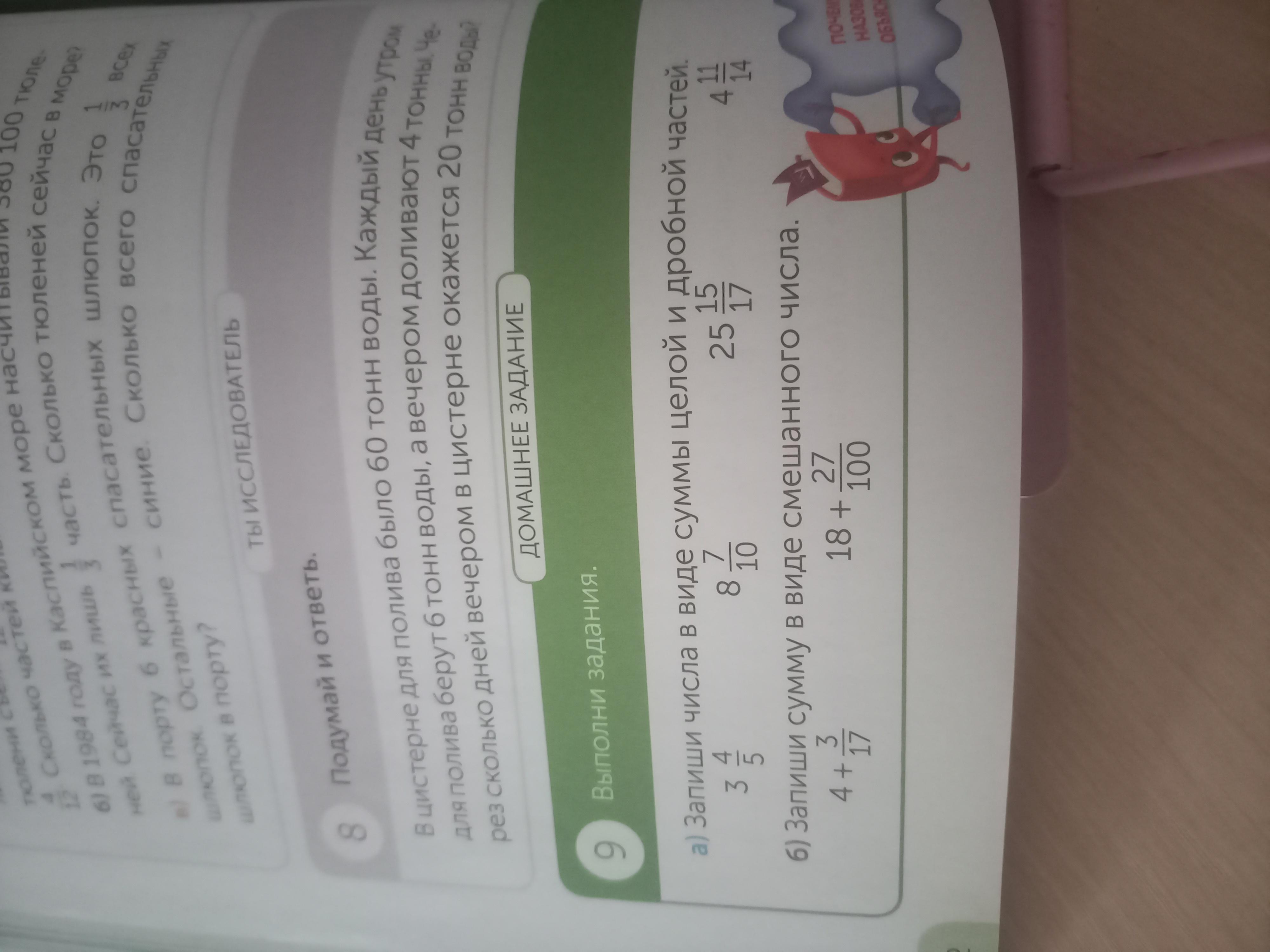б) запиши сумму в виде смешанного числа.