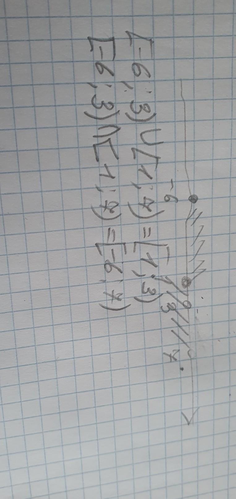 [-6;3)(перевёрнутая U)[1;7)=[-6;7)