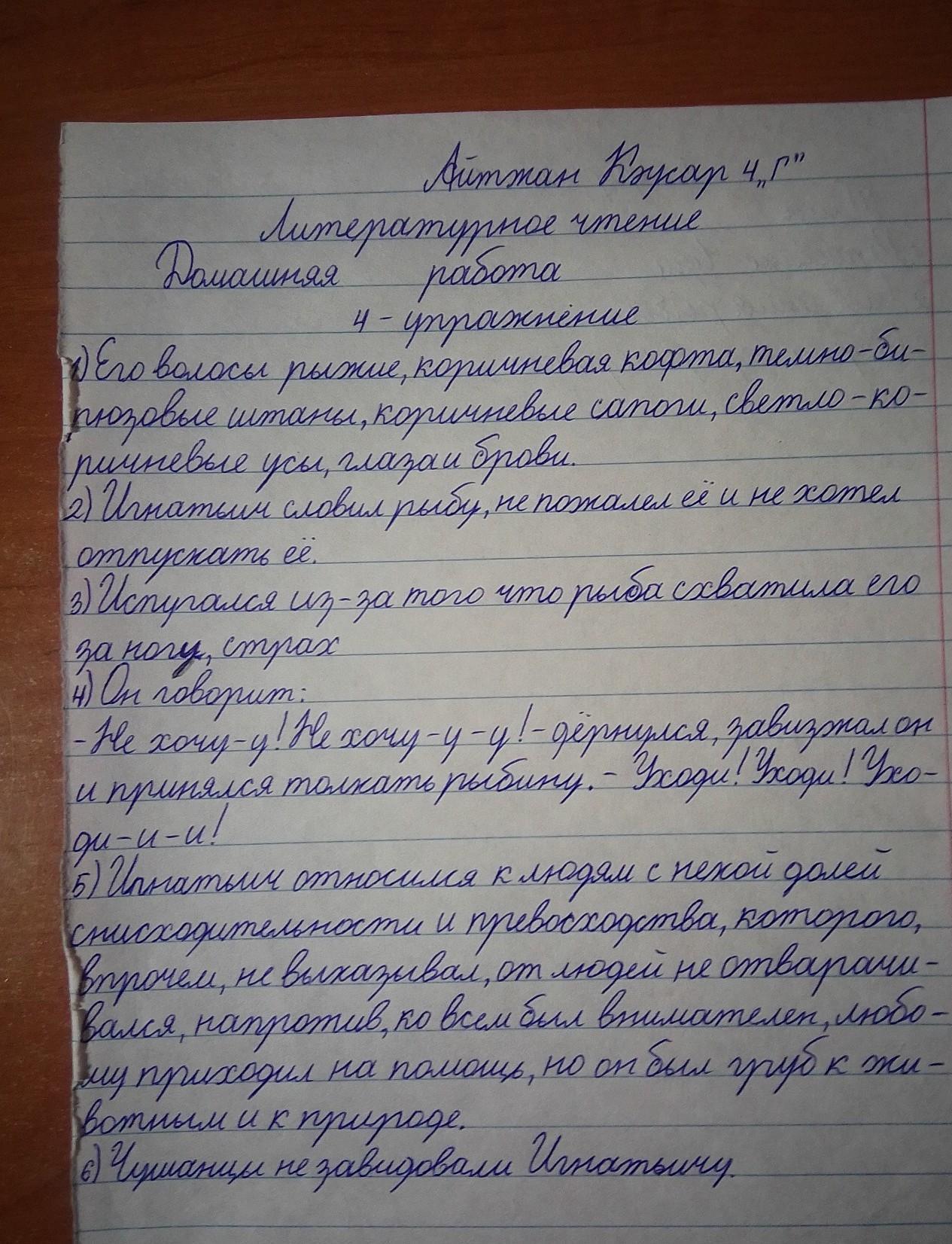 Как сделать задание 4 четвёртый класс пользуясь алгоритмом дай характеристику героя характеристика героя произведения это рыба а автор Виктор Астафьев первое описание внешности второе поведение поступки героя 3 мысли чувства переживания 4 речь о чём и как говорит герой пятое отношение к людям окружающему миру своему делу и шестое отношение других действующих лиц героею 9 лет помогите пожалуйста
