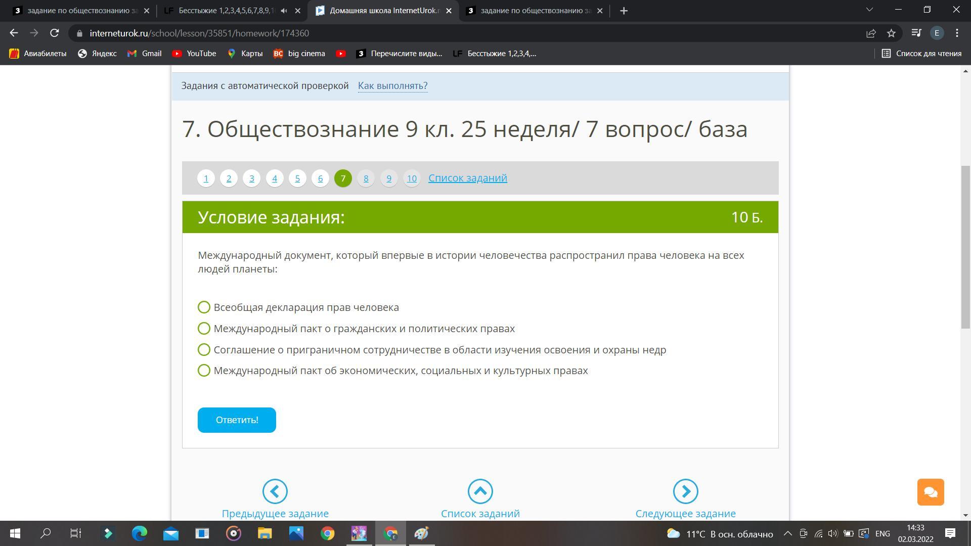 Все же, полагаю, правильным ответом будет верхний: "Всеобщая декларация прав человека".