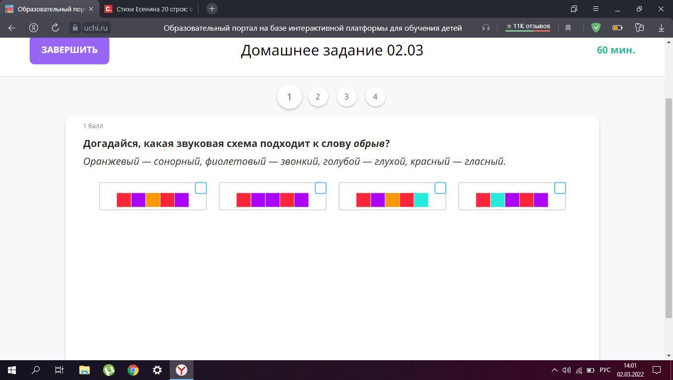 Красный, фиолетовый, оранжевый, красный, голубой.