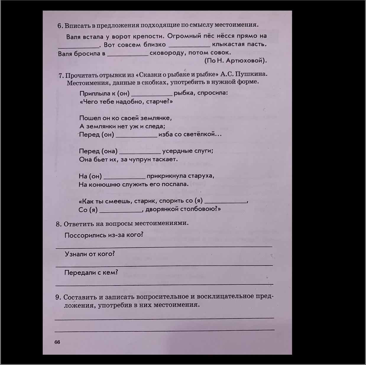 2)приплыла к нему рыбка….,перед ним изба….,перед ней усердные….,ему прикрикнула….,спорить со мною….., со мною