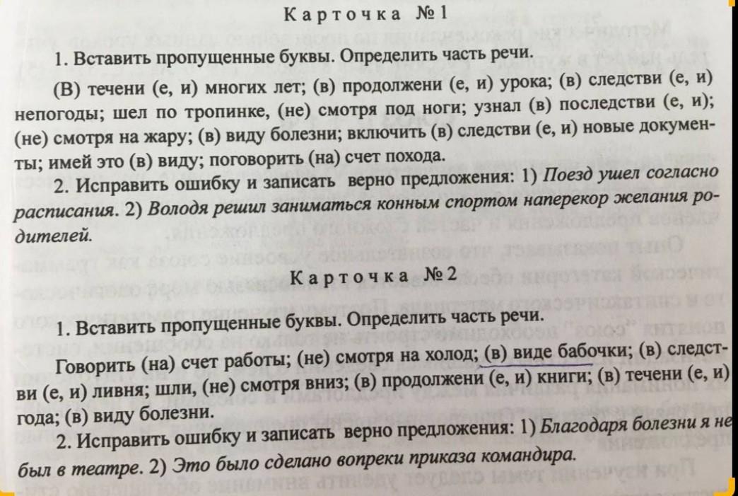 1. говорить насчёт работы; несмотря на холод; в виде бабочки; следствие ливня; шли несмотря вниз; в продолжении книги; в течение года; в виду болезни.
