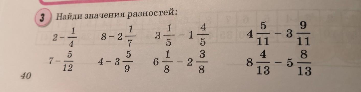 1) 2-1/4=1 4/4-1/4=1 3/4