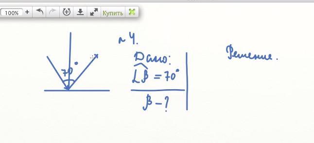 Объяснение: Угол падения равен углу отражения: ∠α=∠β= 70/2=35 градусов