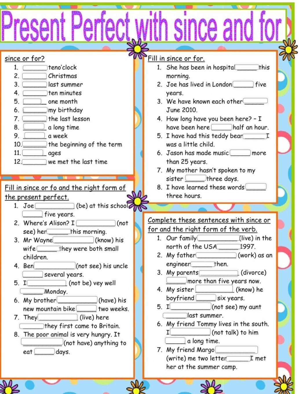 1. 1.since 2.since 3.since 4.for 5.for 6.since 7. since 8.for 9. for 10.since 11.for 12.since